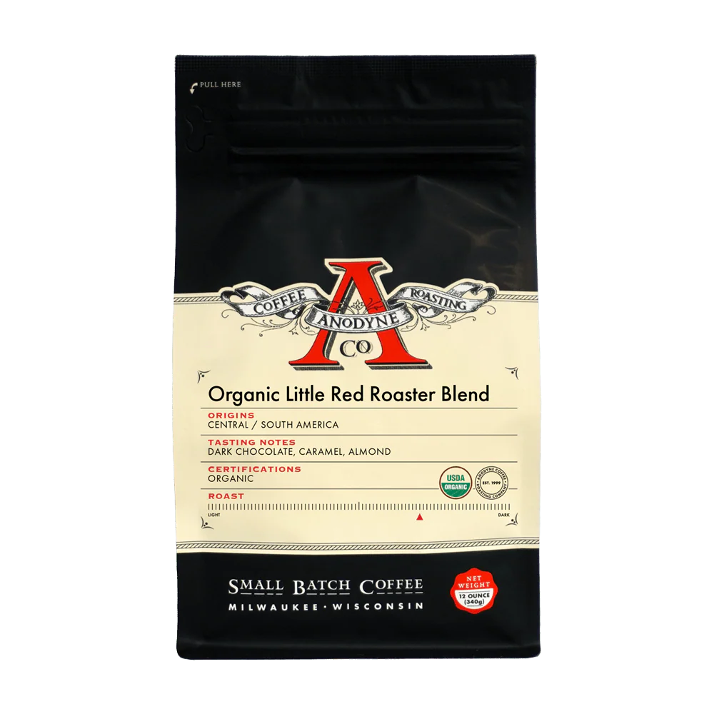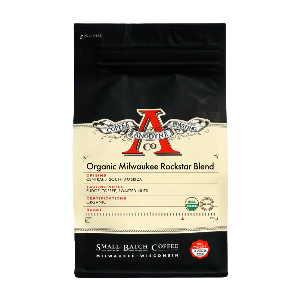 Born in 1999, Anodyne Coffee Roasting Company is a locally owned, small-batch roaster based in Milwaukee, Wisconsin. The team focuses on providing exceptional coffee through careful roasting practice and repeatable processes to ensure consistent, high-quality results. The company emphasizes that coffee is their core craft and invites customers to visit their cafes, call, or order online. Their Walker's Point site is a certified-organic roasting facility and event space; they also support wholesale partners and community engagement.