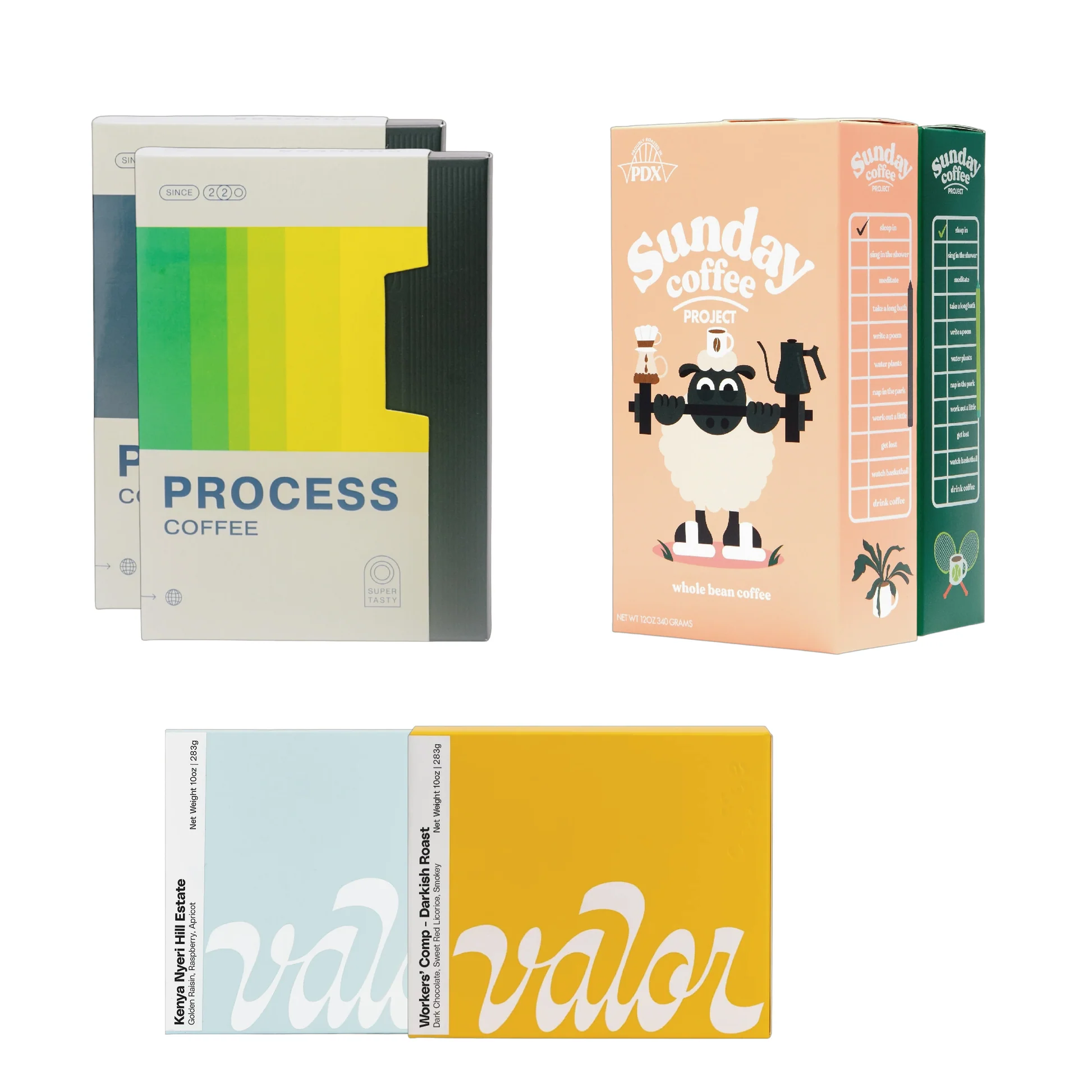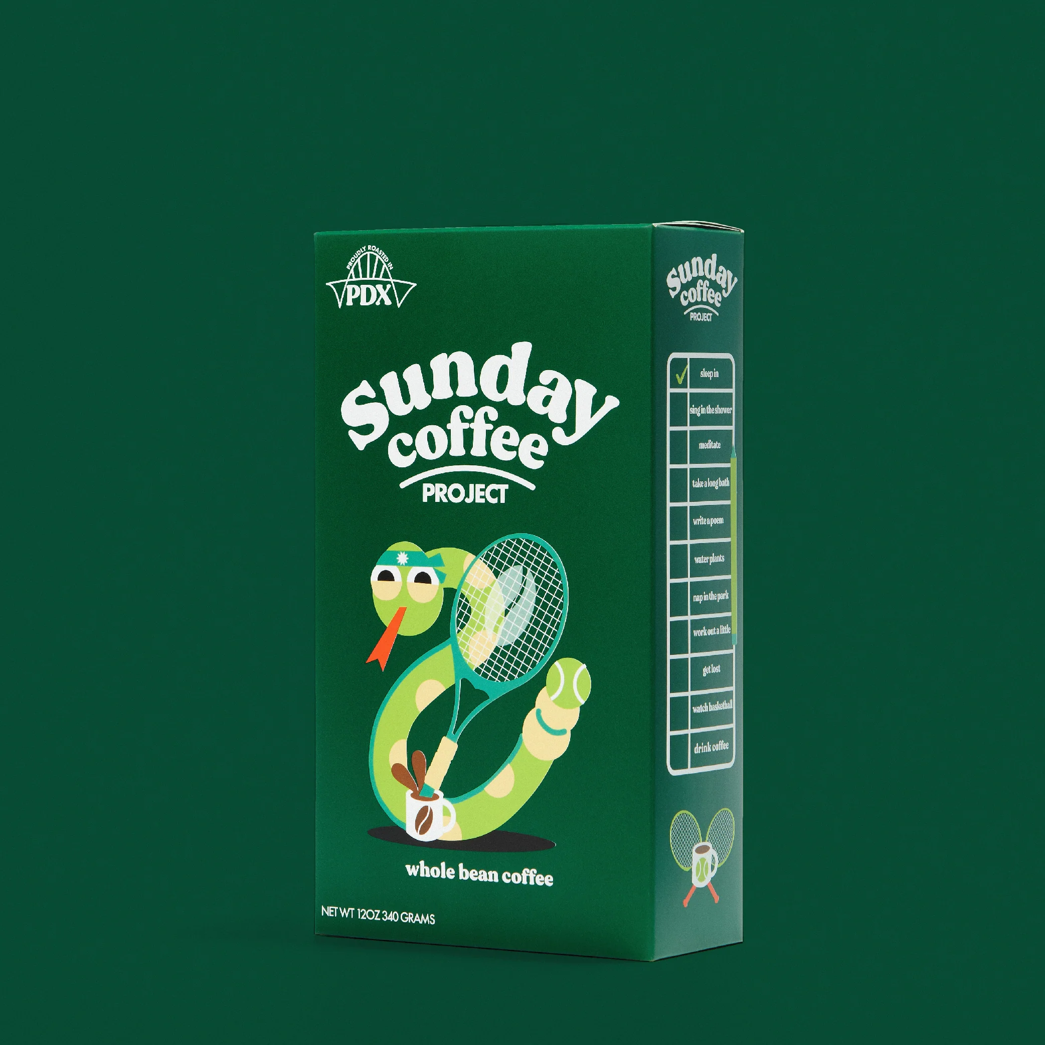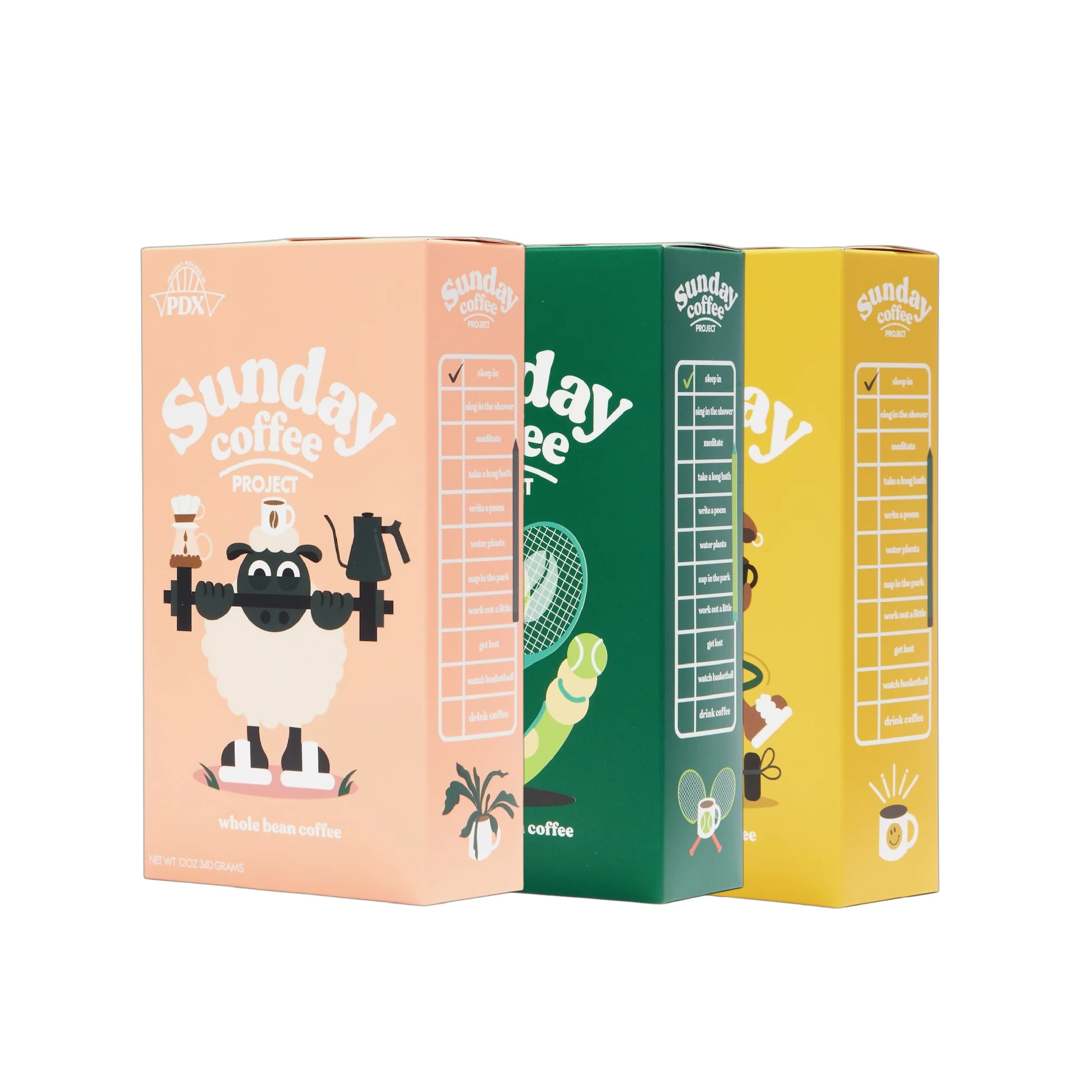Sunday Coffee Project is a Portland, Oregon‑based specialty roaster launched in 2021. They roast high‑quality coffees and create apparel and lifestyle goods, using vibrant cereal‑box‑inspired packaging to make every day feel like a relaxed Sunday morning.